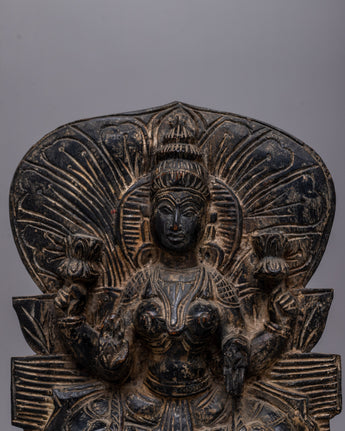 Laxmi is primarily known as the Hindu Deity. But she is also highly revered in Tibetan Buddhism. Laxmi is mainly recognized as a Hindu deity. She is, however, also held in great regard in Tibetan Buddhism. She is also known as Pal Lhamo (Shri Lakshmi). She is said to be a peaceful manifestation of Shri Devi Dudsolma, the primary female guardian of Tibetan Buddhism and Lhasa, Tibet. She is not the same thing as Shri Devi Magzor Gyalmo, the angry manifestation of Sarasvati, who rides a mule and has one face and two arms. The artwork of Shri Lakshmi is often associated with the Gelug Tradition of Tibetan Buddhism and is anticipated to have appeared after the 17th century. Laxmi is known as Lakshmi, Mahalakshmi, Padmavati, Shri, and Bhoodevi, among other titles. She is one of the feminine cosmic energy's aspects, symbolizing the 'rajas' or phenomenal universe's element of fertility, richness, prosperity, wealth, brilliance, and beauty.