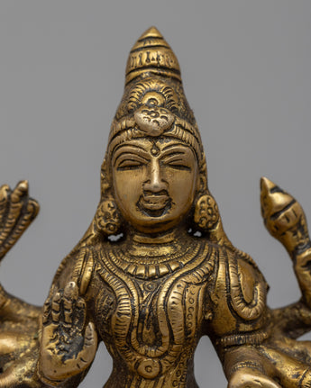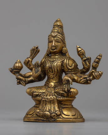The Laxmi Goddess Statue is a stunning work of art, meticulously handcrafted from brass. This exquisite statue depicts the revered goddess Laxmi, the Hindu deity associated with wealth, prosperity, and abundance. With meticulous attention to detail, the artisans have captured the grace and beauty of Laxmi in her seated posture, radiating elegance and divine energy. The brass body of the statue shines with a polished finish, enhancing its aesthetic appeal. Whether displayed in a home, temple, or sacred space, this Laxmi Goddess Statue serves as a powerful symbol of blessings and attracts positive energy, making it a cherished addition to any spiritual collection.