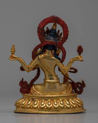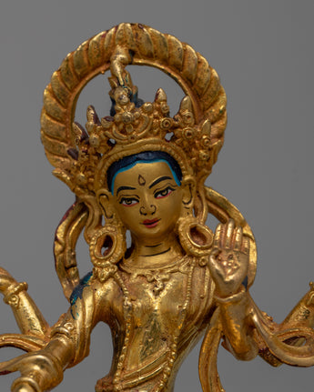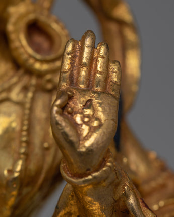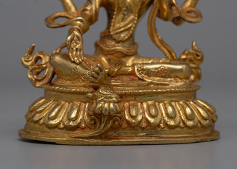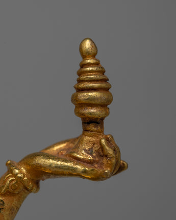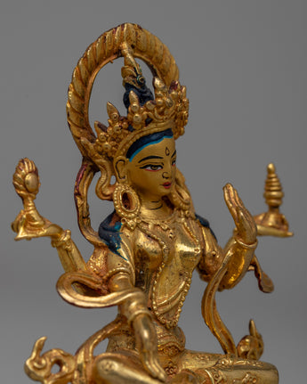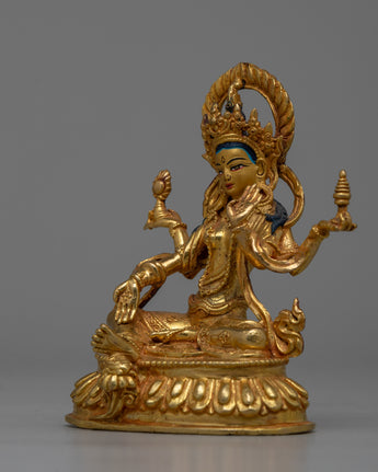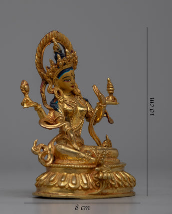 Laxmi Maa's traditional iconography includes symbols of prosperity and well-being, as she is revered for her role in bringing abundance and fortune. The precise machine craftsmanship allows for detailed representation, while the 24k gold gilding adds to the sacredness and aesthetic appeal of the statue. The statue's small size of 10cm makes it suitable for a variety of settings, such as home altars or as a spiritual decor piece.
