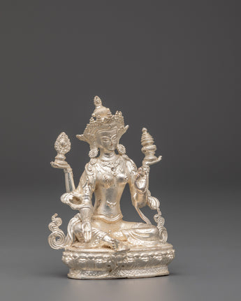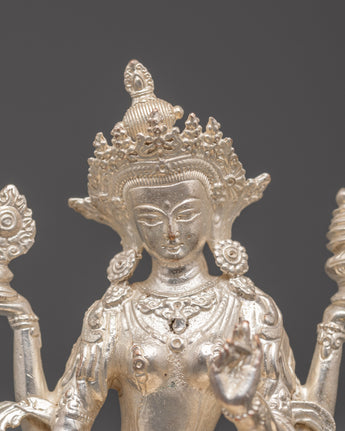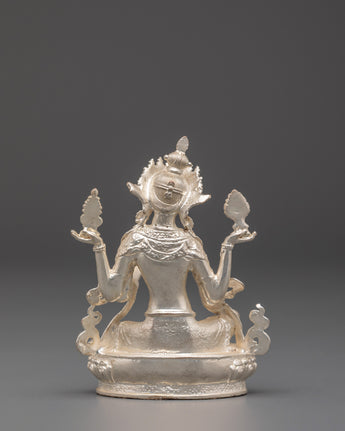 This Sacred Wealth Goddess Laxmi Mata Statue, crafted with a copper body and elegantly silver plated, embodies divine prosperity and abundance. Measuring 9.5cm by 8.5cm and weighing 0.20kg, it captures Goddess Laxmi seated gracefully in a lotus position, exuding peace and spiritual harmony. The detailed craftsmanship highlights her ornate crown, flowing gown, and the meaningful mudras that symbolize generosity, wisdom, and the continuous flow of wealth. Perfect for home altars, meditation spaces, or offices, this statue serves as a powerful reminder to attract positive energy, success, and financial growth into your life. Let Laxmi Mata’s blessings inspire confidence and abundant fortune every day.