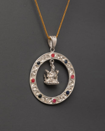 Embrace spiritual elegance with this exquisite Buddhist Master Locket, a 5.5cm tall and 4.2cm wide treasure weighing just 0.010kg. Fashioned from pure silver, it showcases a crowned Buddhist master at its heart—a powerful emblem of enlightenment and inner wisdom. Radiant coral stones encircle the design, traditionally valued for their protective and revitalizing properties. More than jewelry, this refined piece serves as a meaningful spiritual companion, blending timeless symbolism with wearable grace to inspire your journey toward greater consciousness and peace.