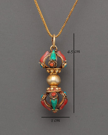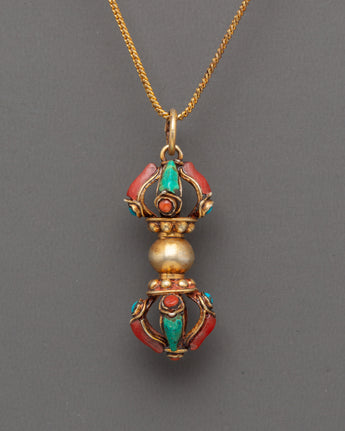 Elegant Gold Plated Vajra Dorje Locket with Turquoise and Coral | Spiritual Jewelry Piece