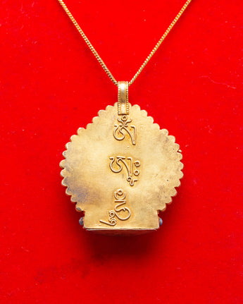 A Buddhist locket is a piece of jewelry designed to hold a small prayer, mantra, or image related to Buddhist practice. The locket may feature a design or image of a Buddhist deity, such as the Buddha, or a representation of a sacred symbol, like the lotus flower. It is typically worn as a talisman to remind the wearer of their spiritual path and to offer protection. Some Buddhist lockets are also used as a form of religious devotion and are frequently given as gifts to friends and family members to provide them with spiritual support and blessings.