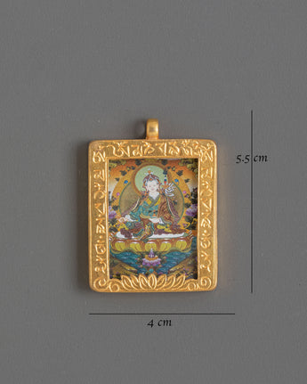 Tibetan Padmasambhava Locket | Buddhist Pendant with Thangka Print for Spiritual Protection