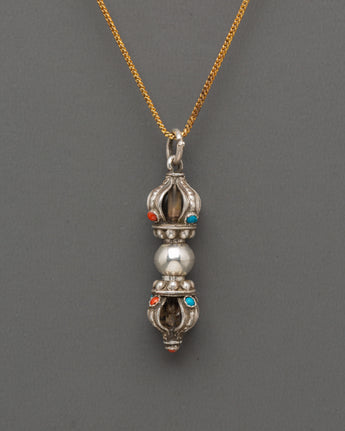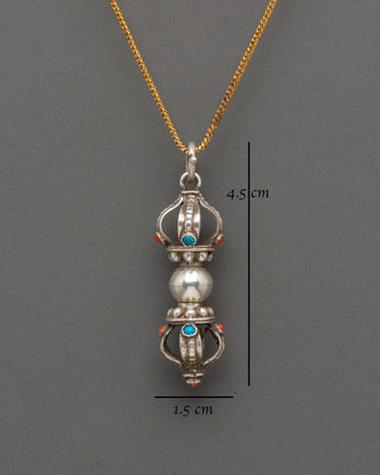 Handmade Silver Locket for Accessory | Vajra Pendant with Coral and Turquoise