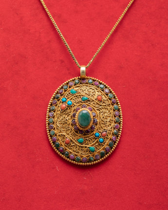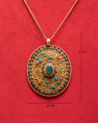 Tibetan Silver Gold Plated Locket | Locket with Healing Gemstones