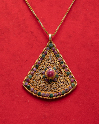 The ruby stone symbolizes vitality, passion, and success, while the panna stone enhances wisdom, clarity, and spiritual insight. Together, these stones make this locket not only a gorgeous piece of jewelry but also a meaningful talisman for those seeking positive energy and blessings. Whether worn for style, meditation, or as a thoughtful gift, this gold-plated silver locket offers both beauty and spiritual significance.