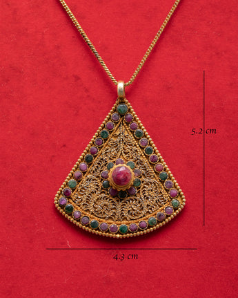 This Silver Locket with a Ruby is an elegant piece of jewelry, expertly crafted from Silver and plated with gold for a rich, radiant finish. Adorned with a stunning ruby and panna (artificial stone), this locket is not just a beautiful accessory, but a powerful symbol of strength, clarity, and spiritual protection. Measuring 5.2cm in height and 4.3cm in width, it offers a perfect balance of size and elegance for both daily wear and special occasions.
