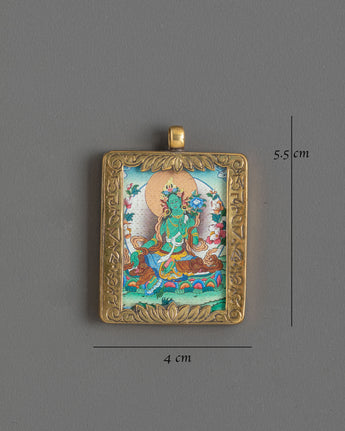 Exquisite Thangka Green Tara Locket Pendant | Sacred Pendant for Protection and Blessings