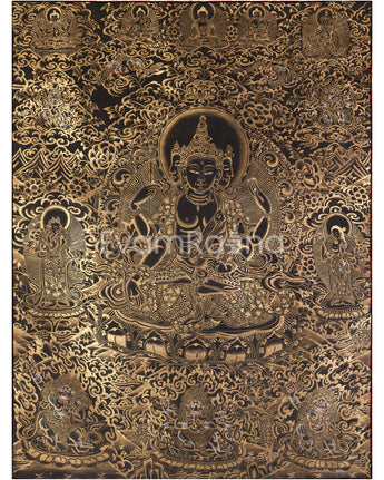 Full Gold Embellishment lokeswara Thangka on Black Canvas | Tibetan Bodhisattva Artistry