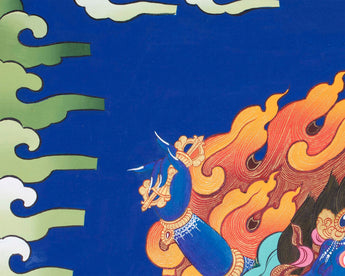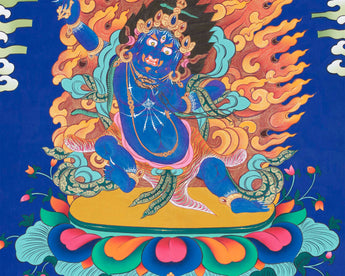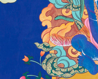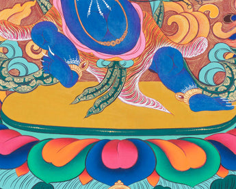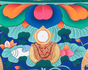 Our thangka is a handpainted Tibetan art done using traditional methods. It is a unique piece created using genuine 24K gold and natural stone colors.