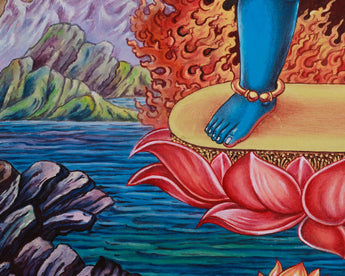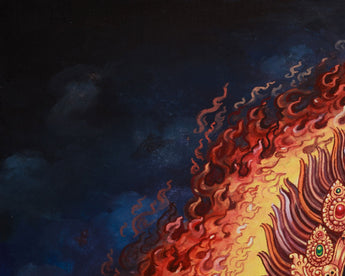 The print created with giclee printing on high-quality cotton canvas showcases the intricate details and bright colors of the original artwork. This giclee method utilizes archival-grade inks, guaranteeing vivid, fade-resistant colors that endure for years. Serving as an artwork and a meditative tool, this print is perfect for practitioners in search of protection, wisdom, and spiritual strength, making it a valuable addition to your spiritual space.