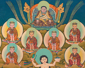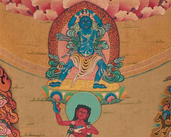 Illuminate your surrounding in the radiant blessings of the Karmapa's Wisdom and Spiritual Learning with our captivating thangka print. This beautiful thangka print exudes a deep spiritual energy and represents the knowledge and enlightenment connected to the Karmapa tradition. Crafted with meticulous detail on a high quality canvas material, the thangka print serves as a visual guide for seekers on the path of spiritual growth and learning. Hang it in your sacred space or study area to invite the Karmapa's transformative blessings, fostering a conducive environment for wisdom and enlightenment.