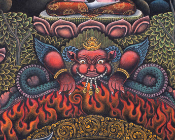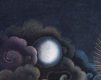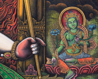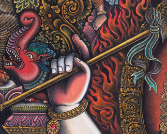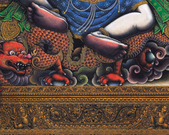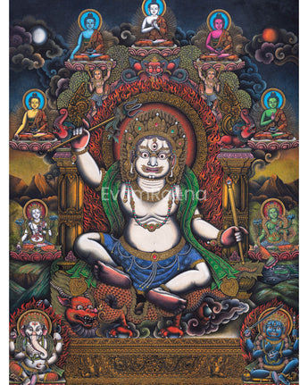 Adorn your sacred space with the White Mahakala Thangka Print, a masterpiece of Tibetan spiritual art. n Tibetan Buddhism, White Mahakala is a highly adored deity who represents protection and purity. The heavenly force of White Mahakala is encapsulated in this premium canvas artwork, providing your space a calm and majestic presence. The intricate details and vibrant colors of this print are beautifully rendered on premium canvas, ensuring a lasting and impactful addition to your spiritual sanctuary. With this gorgeous Thangka Print, you can elevate your spiritual journey and invite the blessings of White Mahakala into your space.