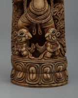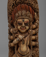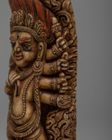 The Buddhist Asian Seal Stamp, expertly created on ethically sourced yak bone, depicts a precise carving of the Eight-Armed Mahakala, a respected figure in Buddhist iconography known for his protective and auspicious qualities. The carving's exquisite lines and contours embody Mahakala's divine workmanship and spiritual essence, inviting practitioners to connect with his powerful presence and seek his blessings.