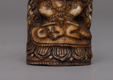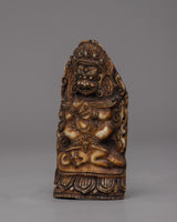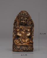 Our exquisitely created Mahakala Bone Stamp is a testament to our concern to both sustainability and artistry. It is fashioned from buffalo bone that is responsibly obtained. This elaborate statue is ideal for display in any area because it is lightweight (0.032 kg) and is 8.2 cm in height and 4.2 cm in breadth.