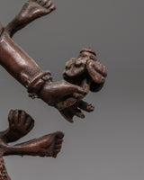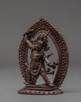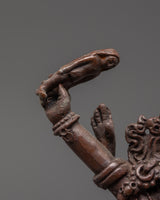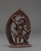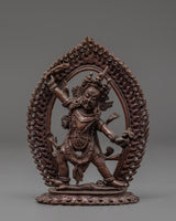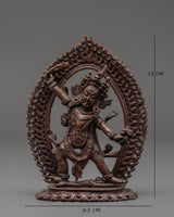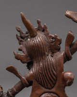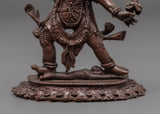 This magnificent Buddhist Ekajati deity Figurine depicts Ekajati, the powerful protector deity of Tibetan Buddhism. This handcrafted piece is 13cm tall, 9.5cm wide, and weighs 0.33kg. It is made of oxidized copper and has a rich, traditional appearance. Ekajati is revered as one of the most ferocious and protective goddesses in Vajrayana Buddhism, and she is frequently summoned for strength, wisdom, and direction on the path to enlightenment. This statue is ideal for meditation spaces, home altars, and prayer rooms, as it offers a sense of spiritual focus and protection.