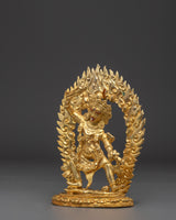 Ekajati is celebrated as the fierce guardian of Buddhist teachings, symbolizing the removal of obstacles and the protection of practitioners on their path to enlightenment. The statue’s intricate details, including Ekajati’s distinctive single eye and intense expression, capture her unique attributes and spiritual significance with exceptional artistry. The gold plating not only adds a luminous shine but also protects the copper beneath, ensuring the statue’s longevity and continued radiance. Beyond its decorative appeal, this statue serves as a powerful sacred object for spiritual cleansing and protection rituals. It invites practitioners and collectors alike to deepen their connection with ancient Tibetan traditions and the protective energies Ekajati embodies. Its compact size allows for versatile placement without sacrificing its commanding presence, making it suitable for meditation, ritual offerings, or as a focal point in a Tibetan Buddhist altar.