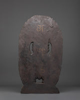 The Handcrafted Shakya Mahakala Sculpture is a striking representation of the powerful Tibetan Protector Deity. Crafted from copper with an antique finish, this statue measures 66cm in height and 38cm in width, making it a commanding centerpiece for any altar or meditation space. The intricate craftsmanship captures Mahakala’s fierce yet compassionate spirit, symbolizing protection, transformation, and the removal of obstacles. This sculpture not only adds artistic beauty but also infuses your environment with spiritual strength and divine guardianship.