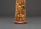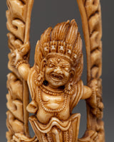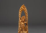 This exquisite Mahakala Protector Deity statue, handcrafted from sustainably sourced yak bone, invokes great protection and spiritual strength. Standing 14cm tall and 4cm wide, this Tibetan guardian figurine depicts Mahakala, a ferocious protector god respected in Himalayan Buddhist traditions. This sculpture, which sits on a natural wood foundation, mixes spiritual symbolism with true craftsmanship, making it an important addition to meditation spaces, personal altars, or ritual collections.