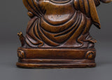 This handcrafted Mahakala Protector Statue symbolizes a legendary figure in Tibetan Buddhism, embodying strong compassion and powerful protection. This statue, measuring 12 cm in height and 9 cm in breadth, weighs 0.67 kg and is made of copper with an oxidized finish that highlights its exquisite details and old charm. Mahakala, also known as the wrathful protector deity, is said to remove impediments, defend spiritual practitioners, and maintain holy locations with unflinching strength.