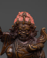 Handcrafted Mahakala Protector Statue | Copper Oxidized Tibetan Wrathful Deity Sculpture