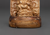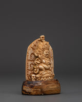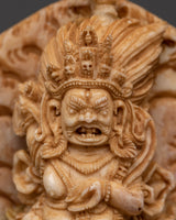 Mahakala, also known as the dharma guardian, is believed to offer spiritual protection by warding off negativity and obstacles on the path to enlightenment. The intricacies of this statue—its furious facial expression, elaborate patterns, and skulls at the base—represent the victory of wisdom and compassion over ignorance and impediment. The buffalo bone material lends the god a raw, natural appearance, thereby increasing its mystical significance.
