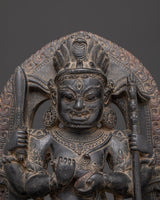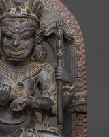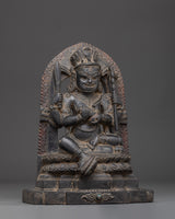 Himalayan craftsmanship's rich creativity. Each detail of his expression, ornaments, and symbolic attributes exemplifies the precision of traditional Buddhist painting. Mahakala, revered as a protector deity, is said to guide spiritual seekers on their journey, remove barriers, and ensure wealth and stability in life. This sculpture's weight and presence heighten its sacred energy, making it suitable for both Buddhist art practitioners and collectors.