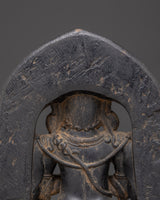 This Sacred Four-Armed Mahakala Statue represents the ferocious compassion and protective power of one of Tibetan Buddhism's most renowned guardian deities. Standing 31cm tall and 24cm broad, this 4.48kg power stone carving exudes a powerful presence, representing Mahakala's position as the ultimate remover of barriers, destroyer of negativity, and protector of Dharma practitioners. This statue, with its four arms representing strength, knowledge, and endless protection, is an excellent focal point for shrines, altars, or meditation areas.