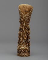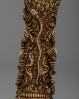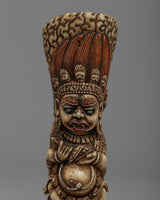 The Tibetan Seal, expertly carved from ethically sourced yak bone, depicts an elaborate sculpture of Shakya Mahakala, a venerated deity in Tibetan Buddhist tradition. Shakya Mahakala's precise representation on the seal, representing protection and triumph over challenges, exemplifies divine artistry and spiritual veneration. Each line and curve in the sculpture represents old wisdom and holy symbolism, encouraging practitioners to connect with the deity's strong energy.
