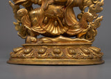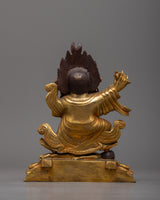 The Two-Armed Bernagchen Mahakala Dharma Protector statue captures the strong yet sympathetic aura of this respected Tibetan Buddhist deity. Crafted precisely by hand on a copper body and embellished with 24k gold plating, this statue reaches 22cm tall, making it a stunning and powerful presence in any spiritual or holy setting.