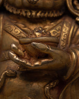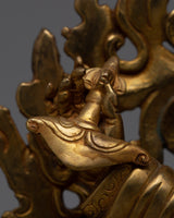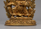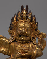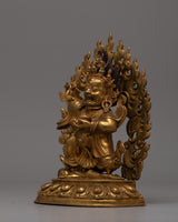Presenting the Wrathful Deity Bernagchen Mahakala Statue, a wonderful symbol of spiritual power and protection. Crafted with precision on a copper base and embellished with sumptuous 24k gold plating, this statue stands 22cm tall and exudes divine authority.