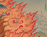 Powerful and captivating, the Sakya Mahakala Painting is a remarkable thangka that embodies divine protection and spiritual strength. Hand-painted on fine cotton canvas with natural stone colors and 24K gold, this masterpiece features vibrant depth and texture. Natural minerals provide rich hues, while gold details add sacred brilliance. In the traditional Karma Gadri style, renowned for its detailed and balanced compositions, it seamlessly combines artistic mastery with spiritual symbolism. Elements like swirling flames and ornaments reflect the devotion of skilled Nepali artisans. This thangka is more than art; it’s a statement of power and divine artistry, inspiring reverence and spiritual confidence.