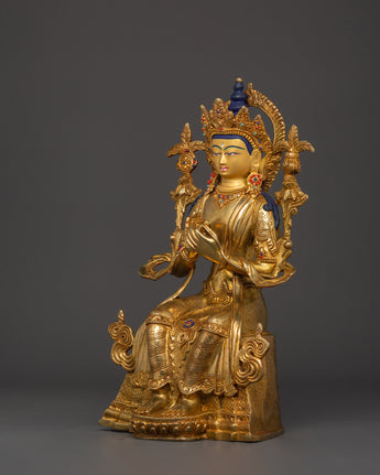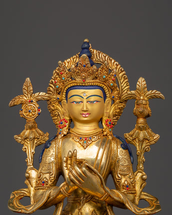 Maitreya Future Buddha Gold Plated Copper Statue | Tibetan Statue for Meditation Space and Altar