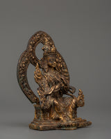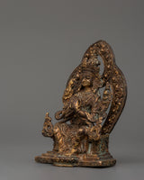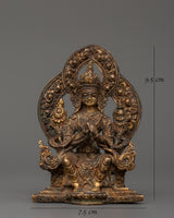 The Maitreya Buddha Statue measures 9.5 cm in height and 7.5 cm in width, weighing 0.24 kilograms. This exquisitely carved copper statue showcases antique craftsmanship and depicts Maitreya Buddha, the future Buddha in Mahayana Buddhist tradition, who symbolizes compassion, love, and hope for the future. Maitreya is often represented as reclining, awaiting the eventual appearance of the Buddha to grant enlightenment to all sentient beings.