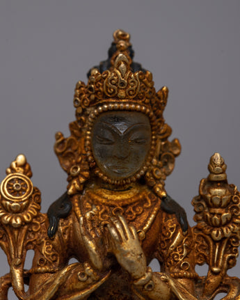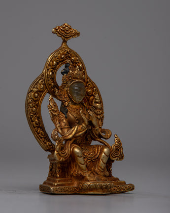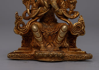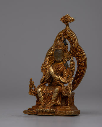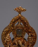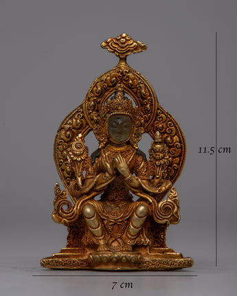 This statue is adorned with electro-gold plating, which gives it a dazzling light and enhances its visual appeal. Artificial stones like turquoise and coral are meticulously incorporated into the pattern, representing spiritual purity and prosperity. Standing 11.5cm tall, this statue is a focal point for meditation, contemplation, and reverence, inspiring practitioners to cultivate virtues of compassion, wisdom, and inner serenity on their path to enlightenment. Whether displayed in a home shrine, temple, or meditation space, the Maitreya, The Future Buddha Statue, is a powerful reminder of all beings' innate potential for awakening.