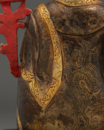 This Maitreya Buddha Statue is a stunning portrayal of the Buddha of the Future, representing compassion, hope, and spiritual awakening. The statue measures 29.5cm tall, 16cm wide, and weighs 2.67kg. It is meticulously carved from copper and gold-plated for a brilliant finish that enhances its holy presence. Maitreya Buddha is depicted in a serene and welcoming pose, seated on a lotus throne with his hands in the meditative contemplation gesture, symbolizing the Buddha's future arrival to revitalize the Dharma.