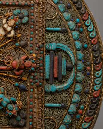 This mandala is really beautiful, but it also has deep spiritual meaning. In addition to adding an opulent touch, the electroplating of 24k gold and silver symbolizes the divine light and purity within. The mandala is a focal point for meditation and contemplation, leading practitioners on a path towards inner serenity and spiritual awakening. It is a revered representation of wholeness and oneness.