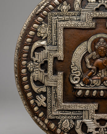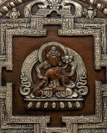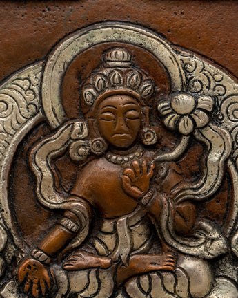 Introducing our Copper Wall Hanging, a breathtaking blend of workmanship and spirituality, delicately made from oxidized copper and embellished with a bright silver plating. At its core is an a deity, meticulously built with love and dedication to serve as a source of divine energy and inspiration.