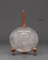 This gorgeous Mandala with Stand, featuring an exquisitely carved White Tara, is both a beautiful work of art and a potent spiritual tool. It is made of Ganesh Himal Crystal and represents peace and positive energy, making it ideal for any meditation room, home altar, or religious location.