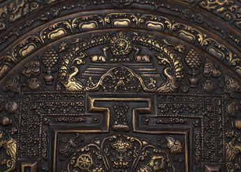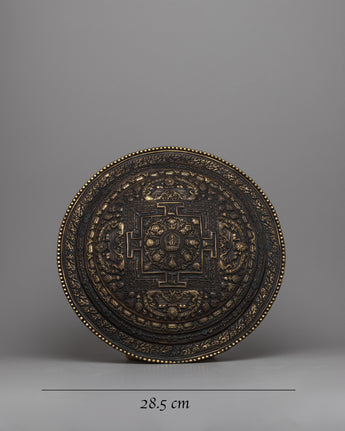 Discover the intricate beauty of our Handcrafted Brass Round Metal Mandala. This mandala, with a diameter of 28.5 cm, is a spiritual symbol representing the universe's harmony and balance in Buddhist and Hindu traditions.