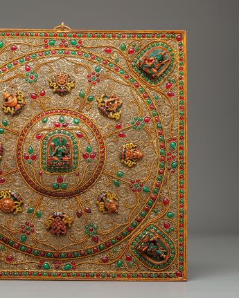 Handmade Tibetan Wall Hanging with Buddhist Deities | Sacred Wall Art