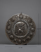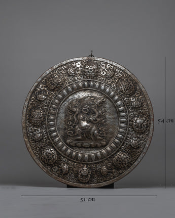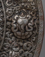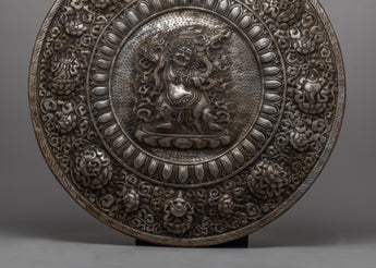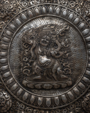 This Traditional Vajrapani Metal Thangka is a stunning work of spiritual creativity, made from a solid iron body with careful attention to detail. This metal thangka is 54 cm tall, 51 cm wide, and weighs 2.73 kg. It is intended to be an eternal emblem of dedication and protection. Vajrapani, one of Mahayana Buddhism's most revered Bodhisattvas, is regarded as the protector of Buddha's teachings and the embodiment of power. This thoroughly carved sculpture is not just a beautiful decorative object, but also a sacred instrument for generating spiritual strength and protection, making it an ideal addition to altars, meditation places, or sacred ceremonies.