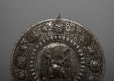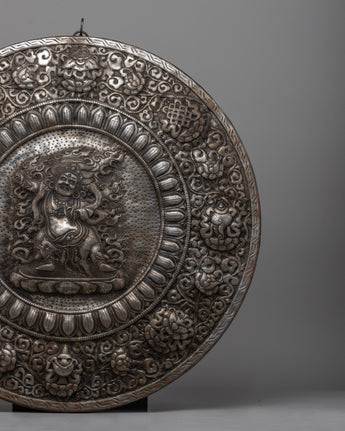 A metal thangka is a type of thangka painting that is made on a metal surface rather than on traditional canvas or paper. Metal thangkas are often made using copper, brass, or silver and are usually decorated with intricate designs and Buddhist iconography using a technique called repoussé. This involves hammering the metal from the reverse side to create a raised relief image on the front. Metal thangkas are known for their durability and are often used in ritual contexts or as decorative pieces in Buddhist homes and temples. They are particularly common in Tibet, where they have been produced for centuries.