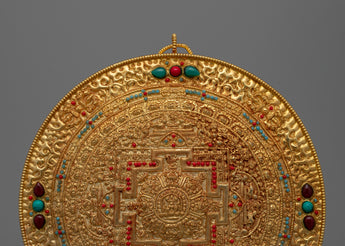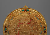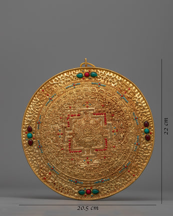 This gorgeous Wall Hanging Metal The intricately designed Mandala Thanka, which is electroplated with gold and has a copper body, is not merely an ornamental item but rather a profoundly spiritually significant emblem. The elaborate Buddhist patterns, inlaid with vivid coral and turquoise, express harmony, balance, and tranquility. It is an amazing addition to any house or sacred area because every detail has been painstakingly created to capture the essence of traditional Tibetan art. as a meaningful symbol of wisdom, compassion, and spiritual ascension, It is an invaluable addition to any sacred space. Its blend of artistry and spiritual significance ensures it can serve as a focal point for meditation and reflection.