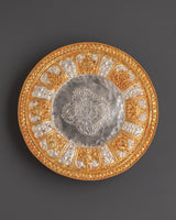This mandala sculpture brings a profound sense of spiritual decor to your home, business, or meditation room. Its size and weight, 0.89kg, make it an attractive centerpiece that commands attention while remaining serene. This gold and silver mandala, whether utilized in your sacred space or as a decorative element, brings calm and positive energy into your surroundings. It also makes a thoughtful and spiritually meaningful gift for individuals who value beautiful, handcrafted art and the more profound significance of religious symbols.