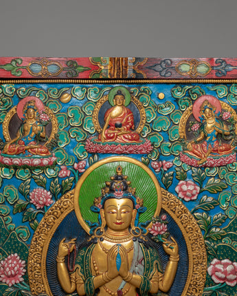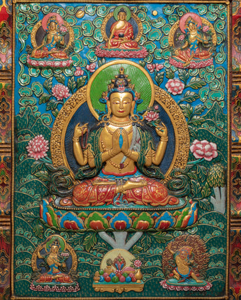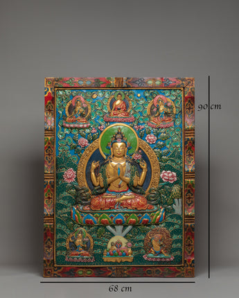 Sacred Chenrezig Wall Art | Buddhist Compassion Thangka Panel
