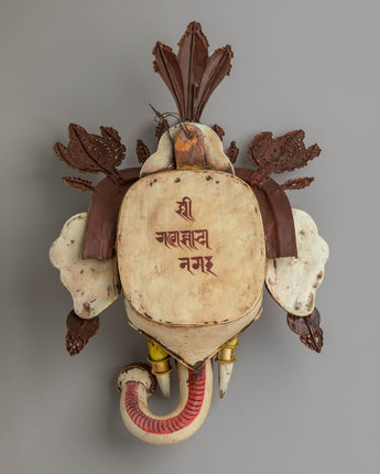This Buddhist Handcrafted Wall Hanging is a divine representation of spirituality, beautifully combining traditional craftsmanship with rich symbolism. Standing at 42 cm in height and 29 cm in width, and weighing 1.3 kg, this piece is made of copper and electro-gold-plated, and enhanced with vibrant acrylic colors and gemstone accents. The intricate design features a Buddha or deity face, a symbol of divine wisdom and enlightenment, making it a stunning addition to any meditation space, altar, or sacred home decor.