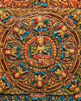 This Compassionate Shyama Tara Wall Hanging is a beautiful and deeply symbolic representation of Shyama Tara, a revered Tibetan goddess known for her boundless compassion, protection, and healing energy. Standing at 76.5 cm in height and 76.5 cm in width, this handcrafted piece is made with stone-dust epoxy binding, providing fine detail. Shyama Tara, often depicted with one leg extended, symbolizes her readiness to offer protection and aid to those in need. This powerful artwork invites her divine blessings of healing, spiritual protection, and compassion into your home.