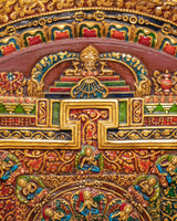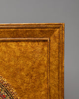 The design of the Shyama Tara wall hanging depicts the goddess seated on a lotus throne, with intricate details surrounding her. The stone-dust epoxy finish brings the lotus petals, symbolic deities, and spiritual motifs to life with fine textures and depth. Tara’s calm, serene expression reflects her wisdom and compassion, while the surrounding intricate designs highlight her nurturing and protective nature. The gold accents add radiance to the piece, making it a beautiful focal point for your spiritual space or Buddhist altar.